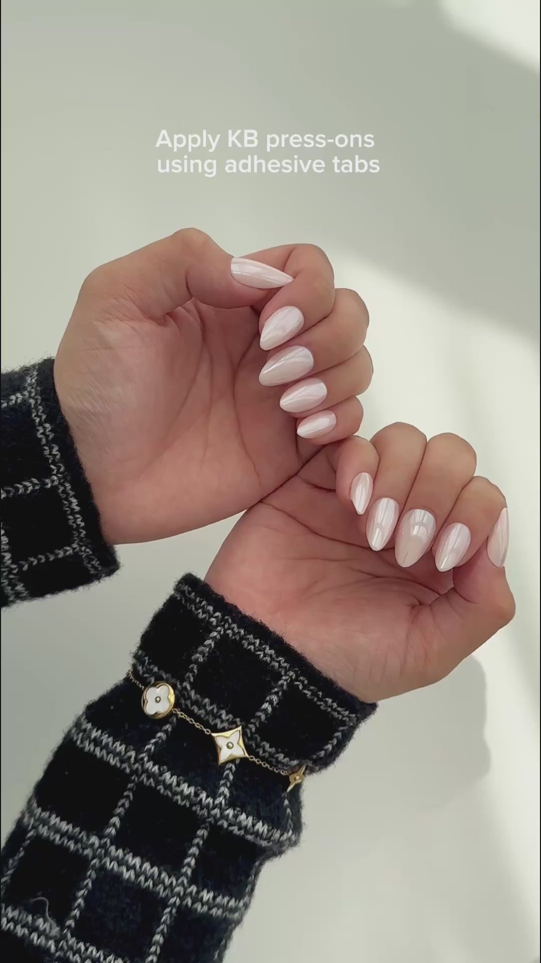 - Align the nail with your cuticle at a 45-degree angle and press down firmly for 20–30 seconds to secure it.