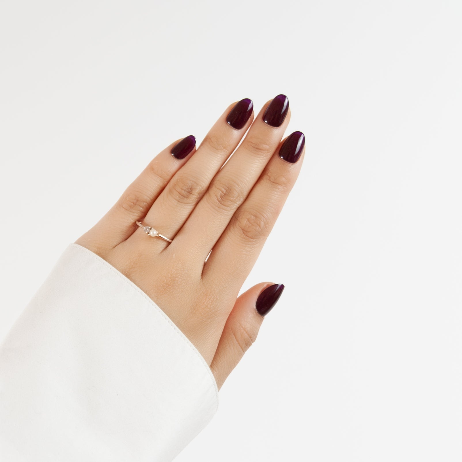 When you’re looking for something rich and bold, Mocha Rouge is the one. Short oval press-on nails in a deep maroon-brown that exudes warmth and elegance.