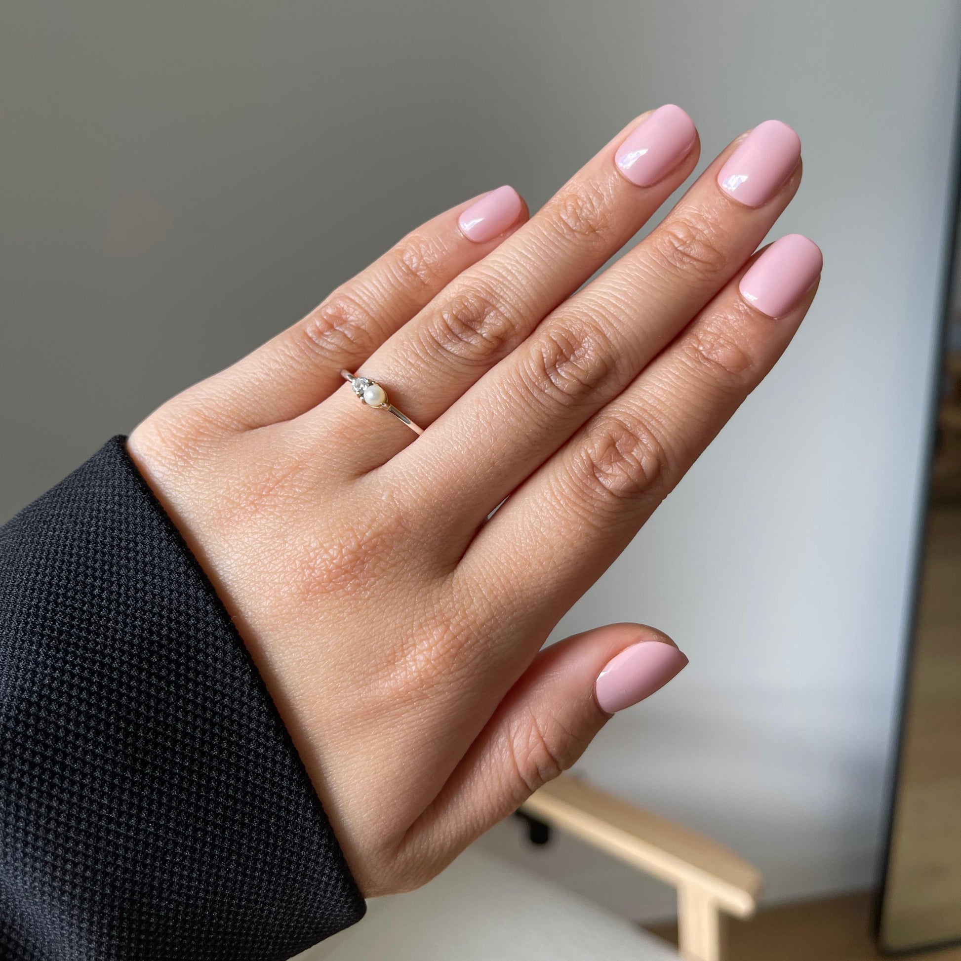 For a soft, fresh look that celebrates spring, Sweet Pea is the one. Short squoval press-on nails in delicate pale pink that feel light, airy, and naturally elegant.